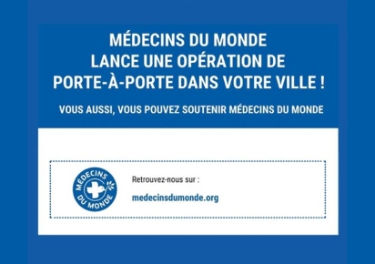 Dans le cadre de sa campagne de l'hiver 2025-2026, les équipes de Médecins du Monde viennent vous voir en porte-à-porte entre le 30 octobre et le 30 décembre 2025. Les équipes seront identifiables et ne demandent ni espèces ni chèque.