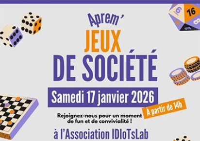 IDIoTsLab ouvre ses portes pour son premier événement jeux de société, ouvert à toutes et tous samedi 17 janvier 2026 à partir de 14h dans ses locaux au 83 rue Jean-Jaurès ! Venez partager un moment convivial, découvrir le lieu, et jouer à plus de 50 jeux : stratégie, ambiance, collaboration… Dégoblinade, Concept, Magic, Zombicide et bien d’autres vous attendent !