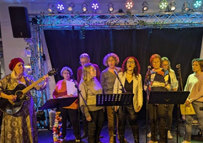 Vous chantez, en chorale, en groupe, en atelier, en box, dans diverses structures. Cela vous donne envie de vous produire en solo, en duo, en trio, accompagné par une musicienne professionnelle (guitare, percus, choeurs) ou par vous-mêmes (piano sur place) ?