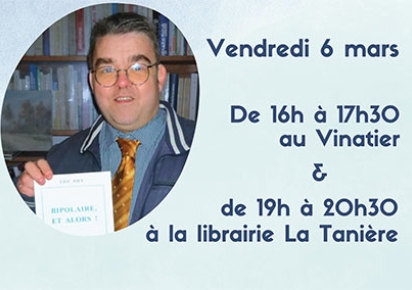 La Bibliothèque du Centre ressource réhabilitation psychosociale du Vinatier propose une rencontre avec Éric Joly autour de son ouvrage "Bipolaire, et alors !" vendredi 6 mars de 16h à 17h30 à l'IFSI.