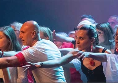 Rémi Aurières, le chef de chœur, vous fait partager sa passion à travers des morceaux harmonisés à 3 voix. Objectif : 100 choristes qui s'unissent et chantent en c(h)œur pour le plaisir de partager ensemble.