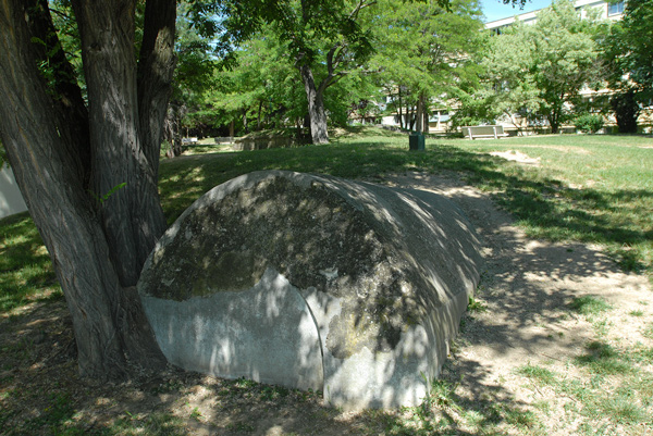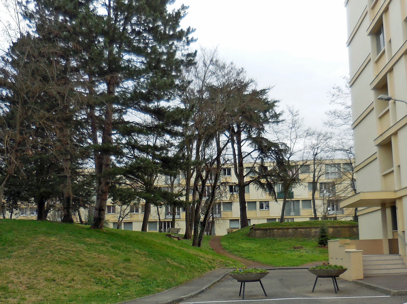 Enfin, la guerre de 1870 eut d'autres conséquences fondamentales pour Bron, qui marquent encore de leur empreinte l'urbanisme de la ville actuelle. Redoutant une nouvelle invasion, l'Etat-major décida en effet d'édifier autour de Lyon une ceinture de fortifications, concrétisées à Bron par un rempart de 11 kilomètres de long, par le fort que tout le monde connaît au moins de nom, et par deux fortins, les batteries de Parilly et de Lessivas. Cette batterie de Lessivas se dressait juste devant vous. Construite entre 1878 et 1880, elle se composait d'une enceinte d'environ 200 mètres de long et 100 mètres de large, contenant des casernements à demi enterrés pouvant accueillir 150 hommes, et enfin par des banquettes d'artillerie prévues pour 17 canons. Outre la défense de la route de Genas, elle permettait d'effectuer des tirs croisés avec les fortins de Décines et de Chassieu. Elle fut utilisée pendant la Première guerre mondiale pour abriter les troupes affectées à la base aérienne de Bron, puis fut déclassée après la Deuxième guerre mondiale. A son emplacement, l'on construisit entre 1966 et 1970 les quatre bâtiments composant la copropriété "Le Lessivas", située sur la bien nommée rue de la Batterie. Les salles souterraines du fortin n'en demeurent pas moins enfouies sous les espaces verts de la résidence, héritières méconnues d'une guerre malheureuse.