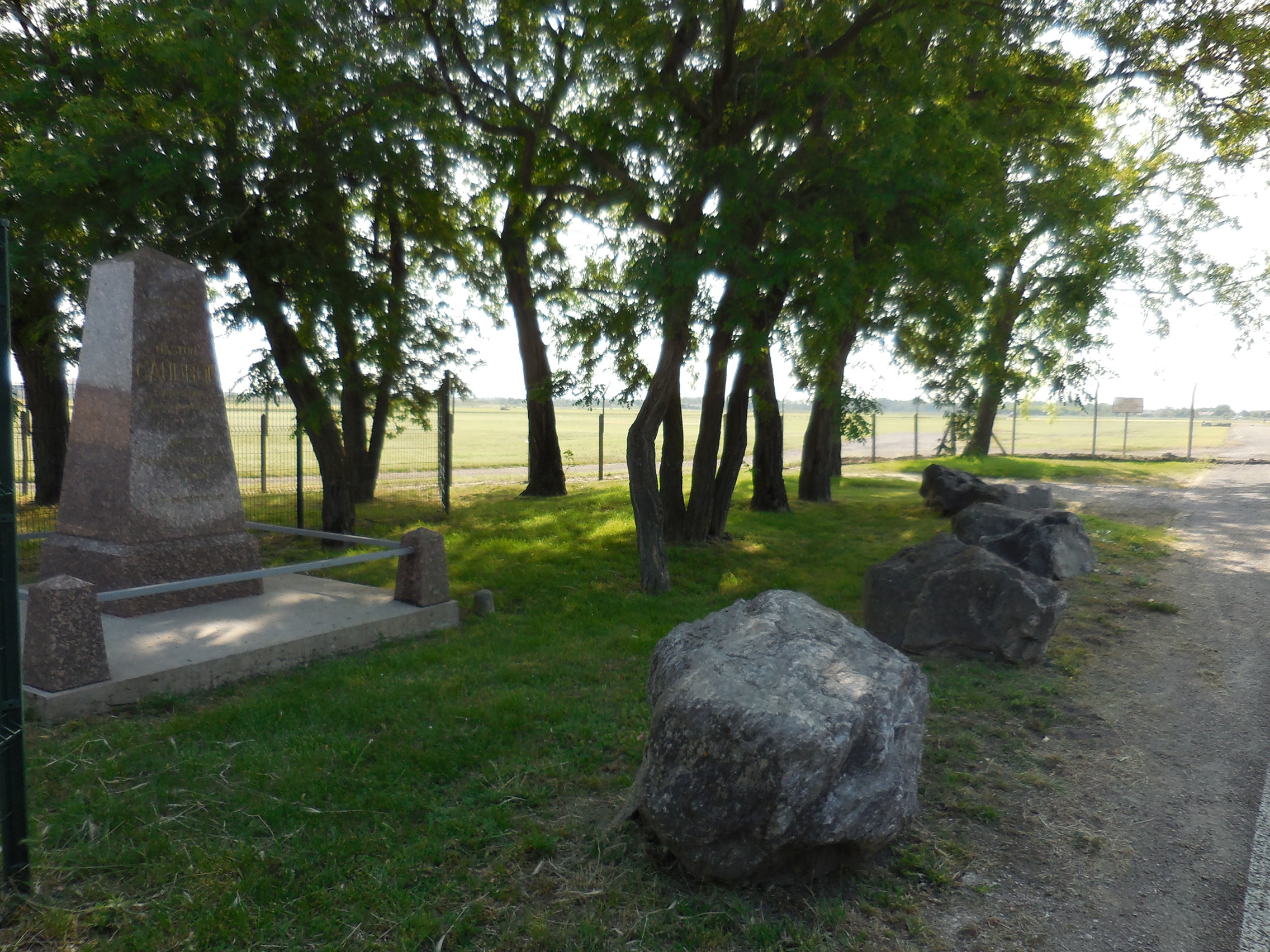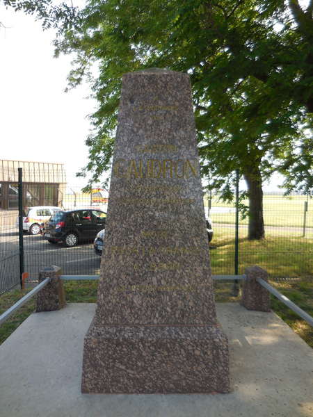 - Aller jusqu'au bout de la rue (ancienne route de Grenoble). Vous trouverez le monument dédié à Gaston Caudron devant le bâtiment de la Sécurité Civile, sous un bosquet d'arbres.