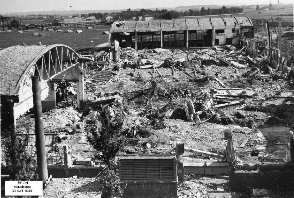 Après la construction d’une grande aérogare et d’immenses hangars abritant les avions de la base aérienne, l’aéroport de Bron connait un bel essor et devient l’un des plus importants du pays. Le déclenchement de la guerre interrompt subitement cette croissance. En août 1939, toutes les installations sont confiées à l’Armée de l’Air, tandis que l’aviation civile arrête ses activités. Les chasseurs, les bombardiers et les avions de reconnaissances basés à Bron rejoignent les frontières du nord et de l’est de la France, où ils prennent part à la « drôle de guerre ». Un peu plus tard, en janvier 1940, plus de 3000 aviateurs polonais ayant fui leur pays envahi par les nazis s’installent dans notre ville. Arrive la débâcle et avec elle les premiers bombardements ennemis qui, en mai et juin 1940, détruisent une partie de l’aéroport.