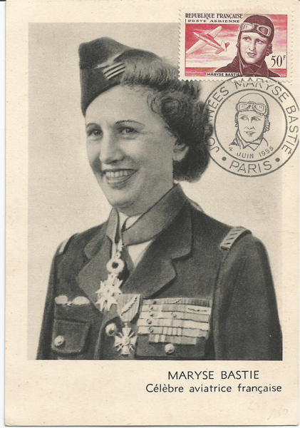 Maryse Bastié. Bien étrange est le destin qui transforma la petite ouvrière en chaussures qu'elle était, en grande dame de l’aviation. Sa passion naquit de son mariage avec Louis Bastié, moniteur aviateur de profession, qui l'amena à passer son brevet de pilote à l'aéroport de Bordeaux, en 1925. Mais les femmes peinent encore à cette époque, à trouver leur place dans un monde éminemment masculin. Maryse va se battre en permanence contre la misogynie qui règne dans le milieu de l’aviation, et qui lui fera s’écrier un jour face à un journaliste : « la femme ne serait-elle que la belle moitié du genre humain, dont la mission est de rendre la vie agréable à l’autre moitié ? ». Devenue pilote professionnelle, elle réussit à s’acheter un avion d’occasion, puis s’attaque à tous les défis. En 1929, elle gagne le record féminin de durée avec un vol de 26 h 48, puis de 37 h 55 un an plus tard. En 1931, elle bat celui de distance en monoplace, sur un vol Paris-Moscou en 30 h 30. Année après année, de nouveaux lauriers s’ajoutent à son palmarès : endurance, avions légers, longue distance, record féminin toutes catégories, etc. La passion de l’aviation, en cette première moitié du 20e siècle, devait se doubler d’un grand courage, car la mort était souvent au rendez-vous, sans distinction de sexe cette fois : Hélène Boucher en 1934, Jean Mermoz deux ans plus tard, Edmée Jarlaud en 1939, et tellement d’autres encore... Du courage, Maryse Bastié n’en manque pas. En 1936, elle réussit à traverser en solitaire l'Atlantique sud, reliant Dakar à Natal, au Brésil, alors que trois semaines auparavant, Mermoz s'était perdu en mer en tentant le même exploit.